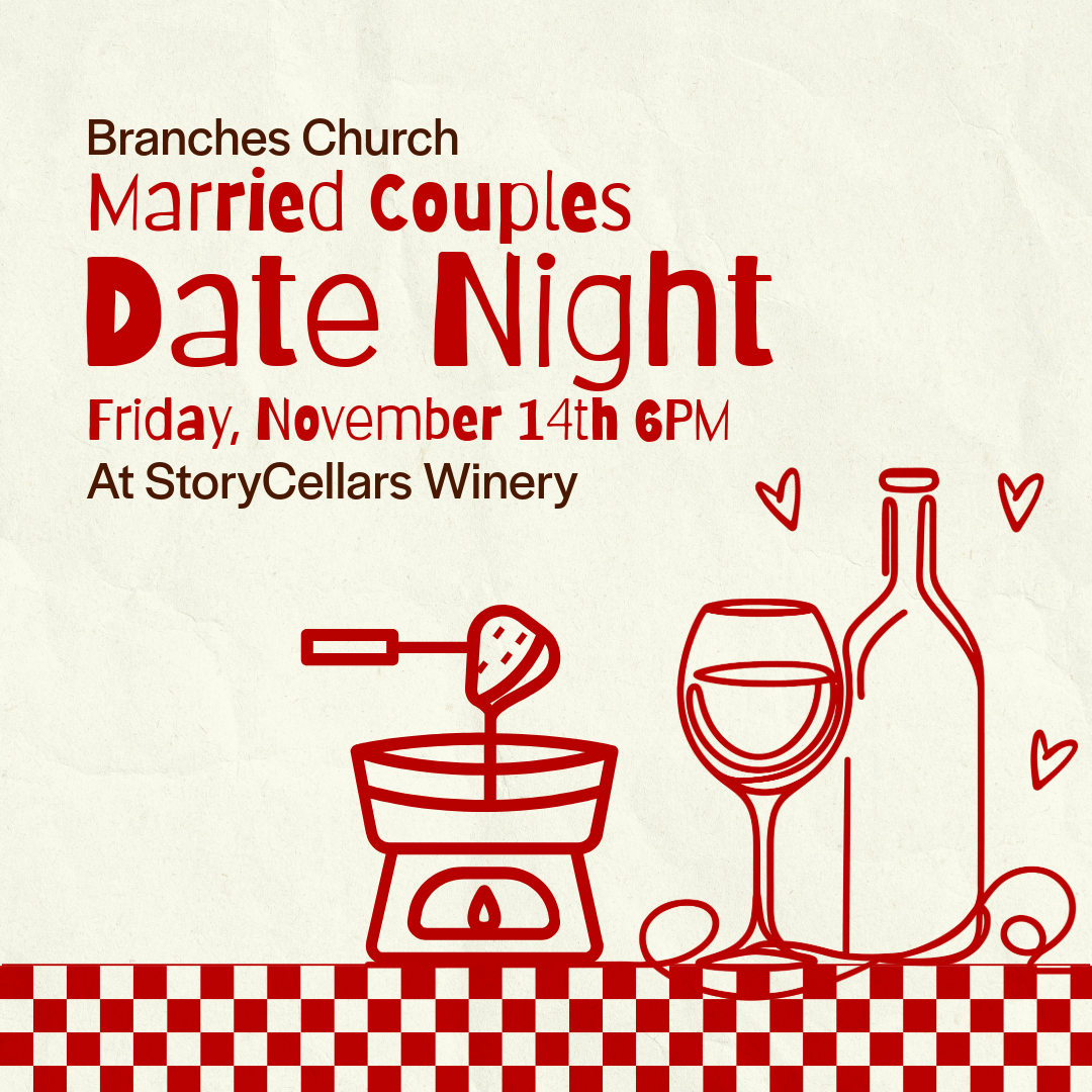 Calling all Married Couples! Join us for a Date Night packed with laughs, connection, and practical ways to grow in love—plus all the good stuff: fondue, charcuterie, mocktails, and free childcare!