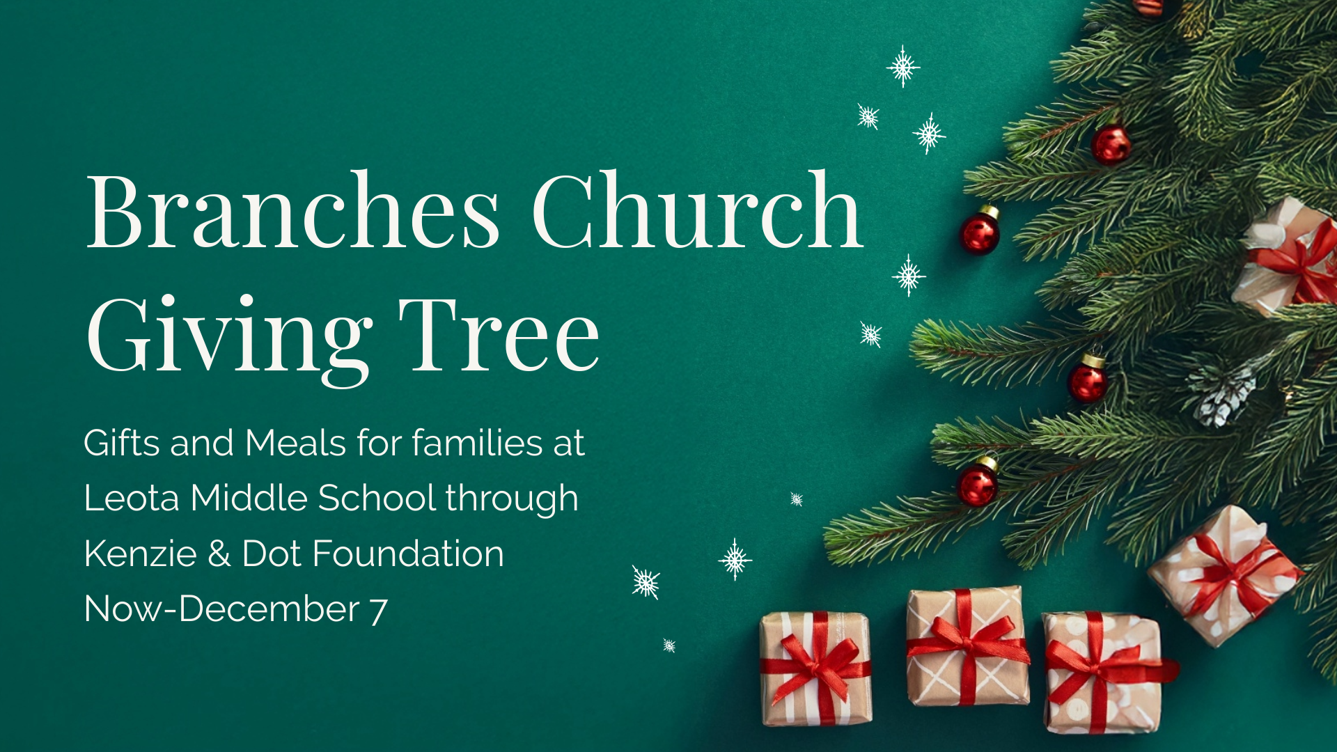 Check out the Giving Tree in the back of the Sanctuary and pick out gifts and food to card. All items are due back by Sunday, December 7th. The gifts will be wrapped & delivered to Kenzie & Dot Foundation who works with the Woodinville Police Department to deliver to the families.